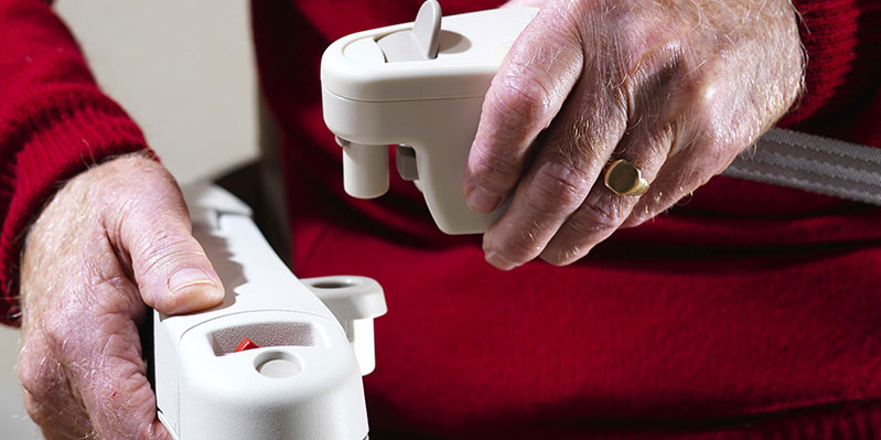Su silla Siena incluye un cinturón muy fácil de utilizar, que se recoge en uno de los reposabrazos. Significa que no tiene que agacharse o mirar hacia tras para coger el cinturón - ¡con una sola mano!